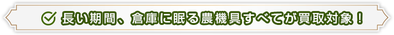 お客様の大切な農機具を、状態やメーカー、状態に関わらず、大切な思い出と価値を尊重しながら査定いたします。